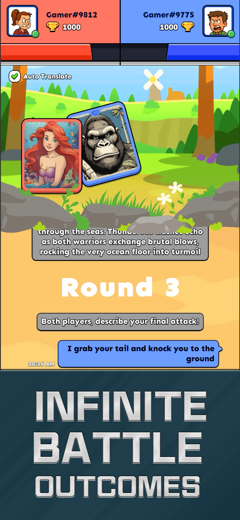 Victory is decided by your words. Players can summon any hero, unleash attacks through text, and craft infinite battle outcomes powered by creativity.