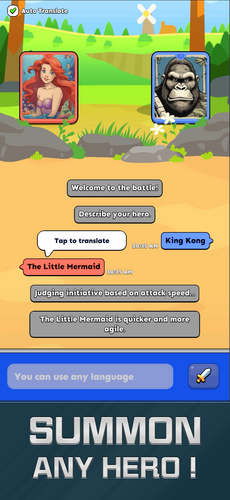 玩家可以自由召喚任何英雄,透過文字展開各種攻擊,憑藉創意創造出無限可能的戰鬥結果。